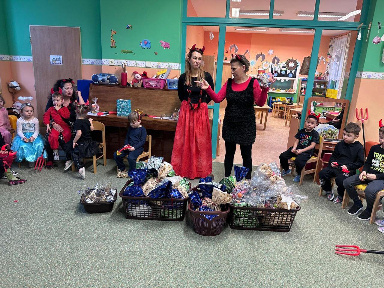 Za to čertovi básničkou Čerte, čerte chlupatý, nechej pytel za vraty, slibuji ti, slibuji, že už zlobit nebudu, a to myslely opravdu vážně. Velké poděkování patří rodičům, kteří přispěli do balíčků sladkostmi a
