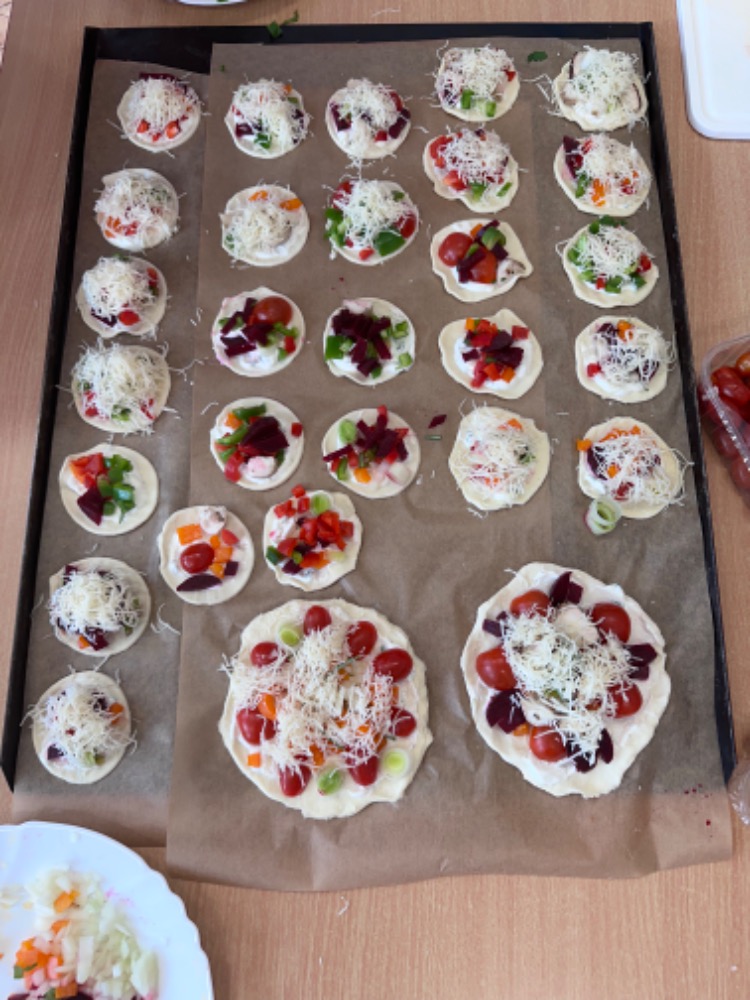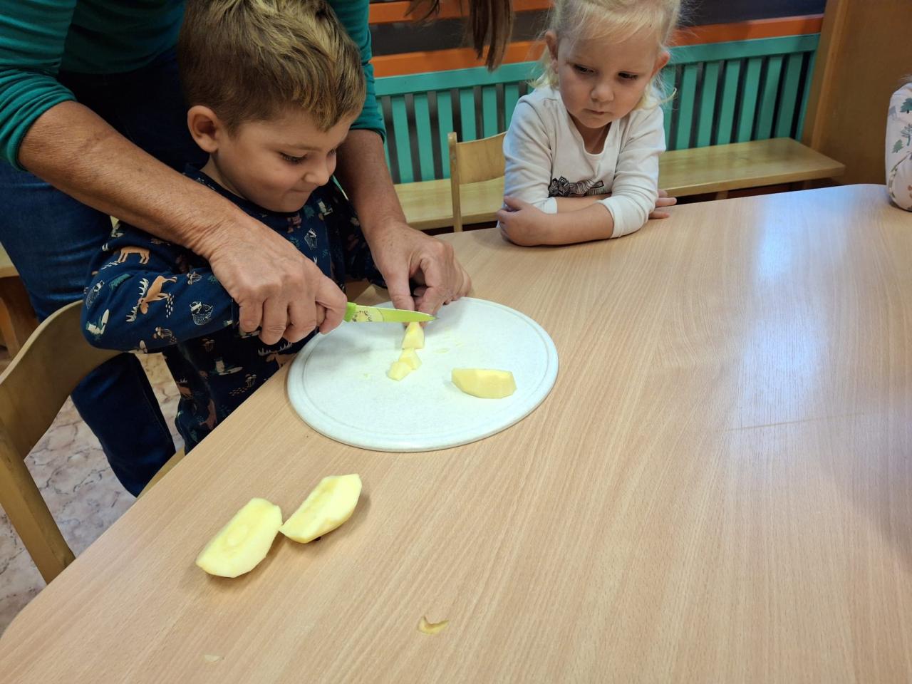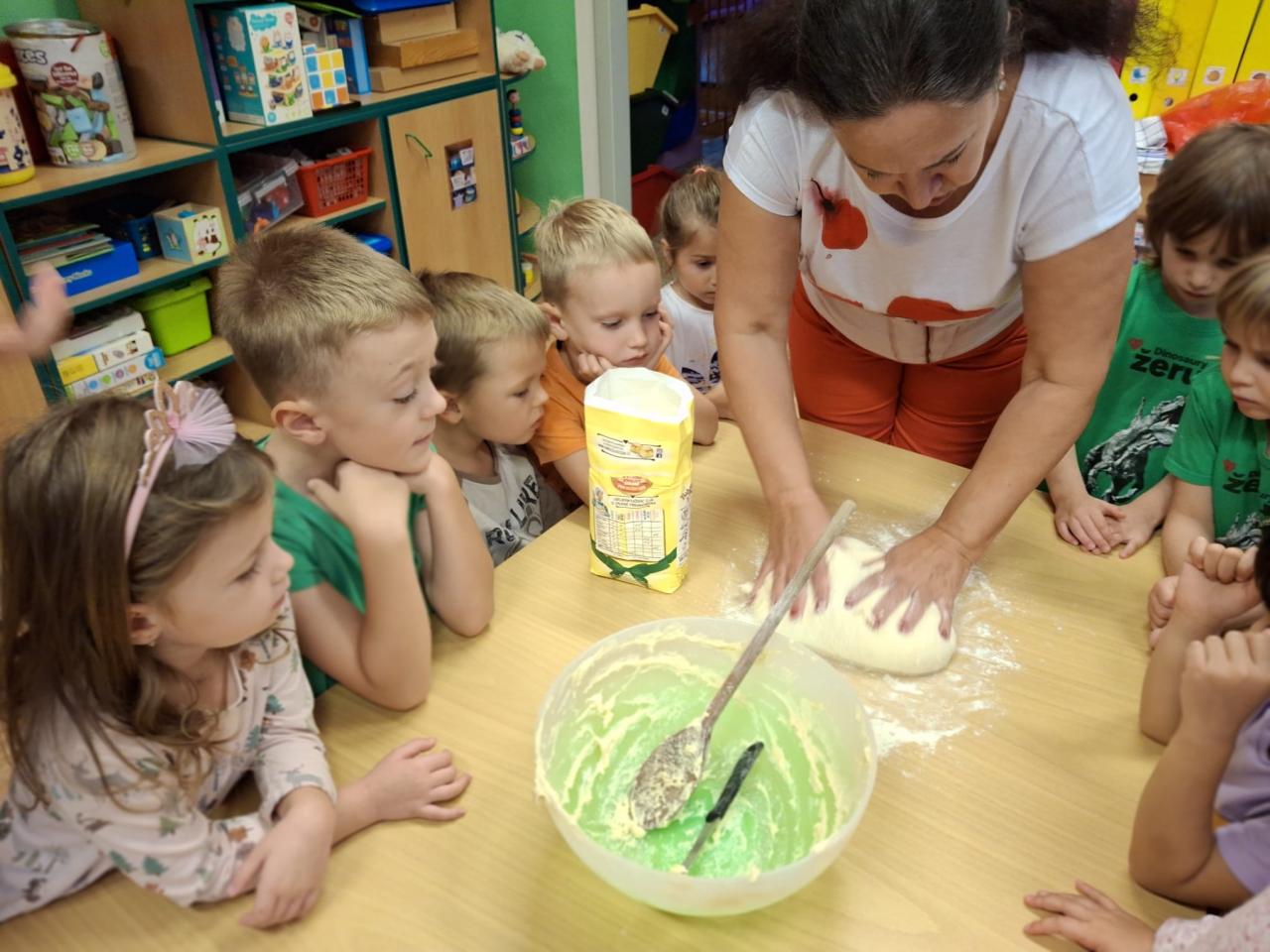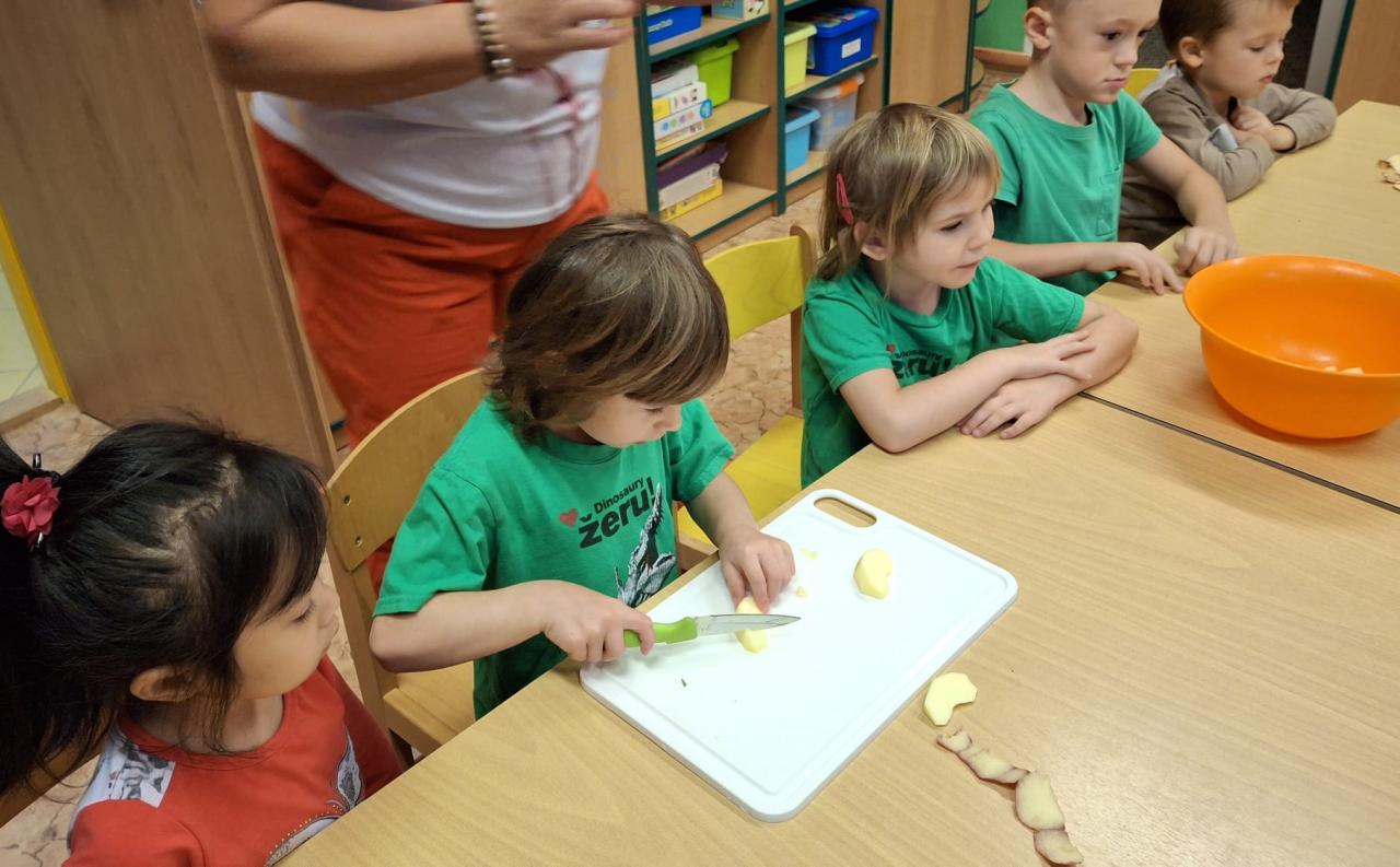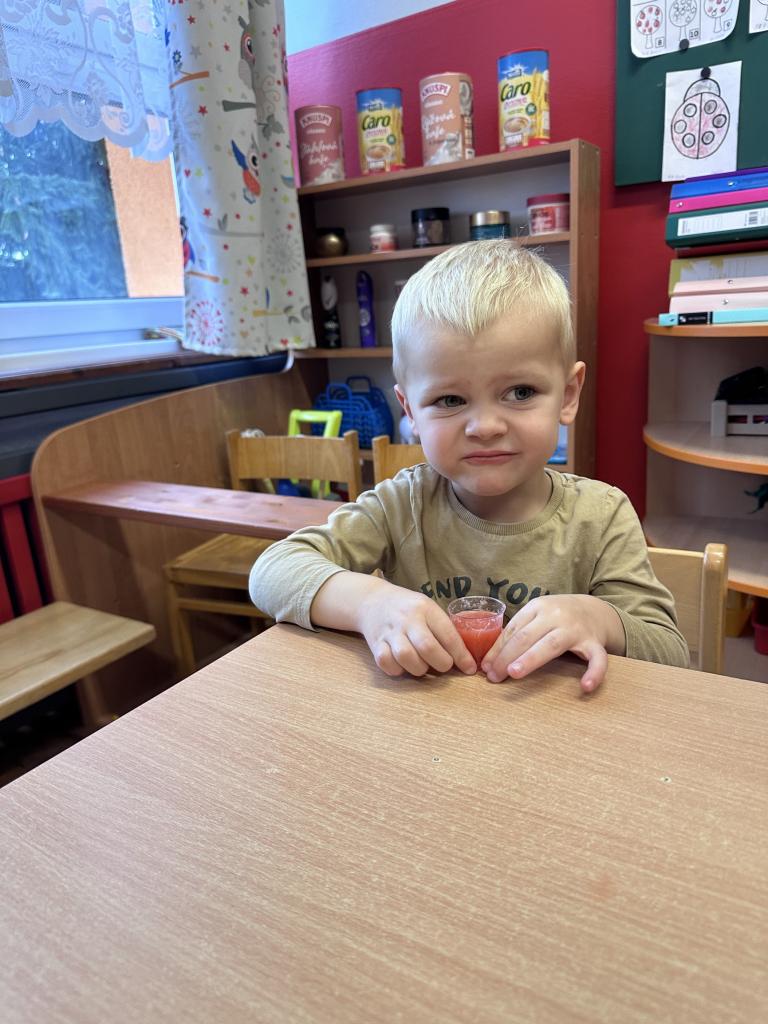 taštičky. V pátek nechyběla ochutnávka čerstvého ovoce, ale i výroba křížal a rozinek. Další týden přišla na řadu zelenina. Sluníčka zvládla pečení mrkvových sušenek a Berušky pizzu, bramborové placky i dipy. V pátek pak nechyběla ochutnávka nejen čerstvé zeleniny, ale i smoothie.