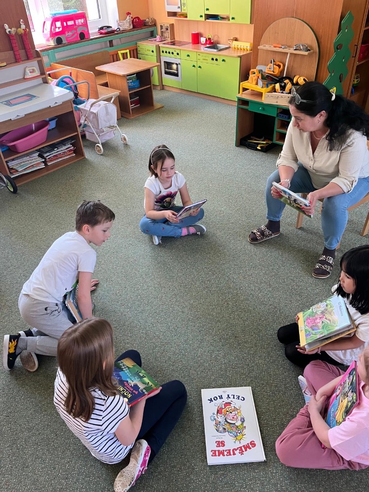 kde na nás čekala knihovnice Lucka. Ta nás seznámila, jak to v knihovně chodí, přečetla nám jednu pohádku a dovolila dětem si volně knížky prohlížet. Po návratu do školky si děti daly večeři ze svých zásob. A následovalo luštění křížovek, kvízů, hádanek. Na závěr si každý vyrobil svou záložku do knihy. Přestože nás bylo málo, společné chvíle jsme si užili, a v dětech snad probudili zájem o knihy.