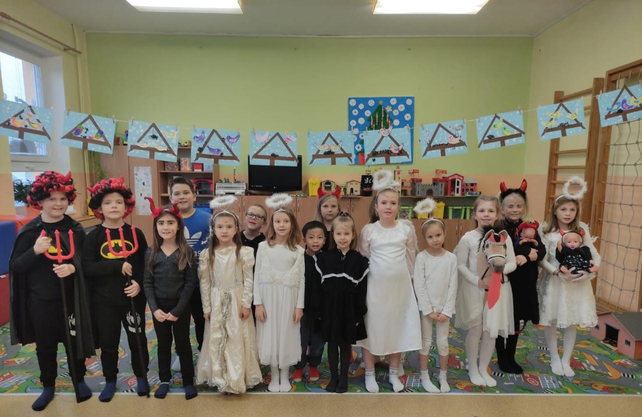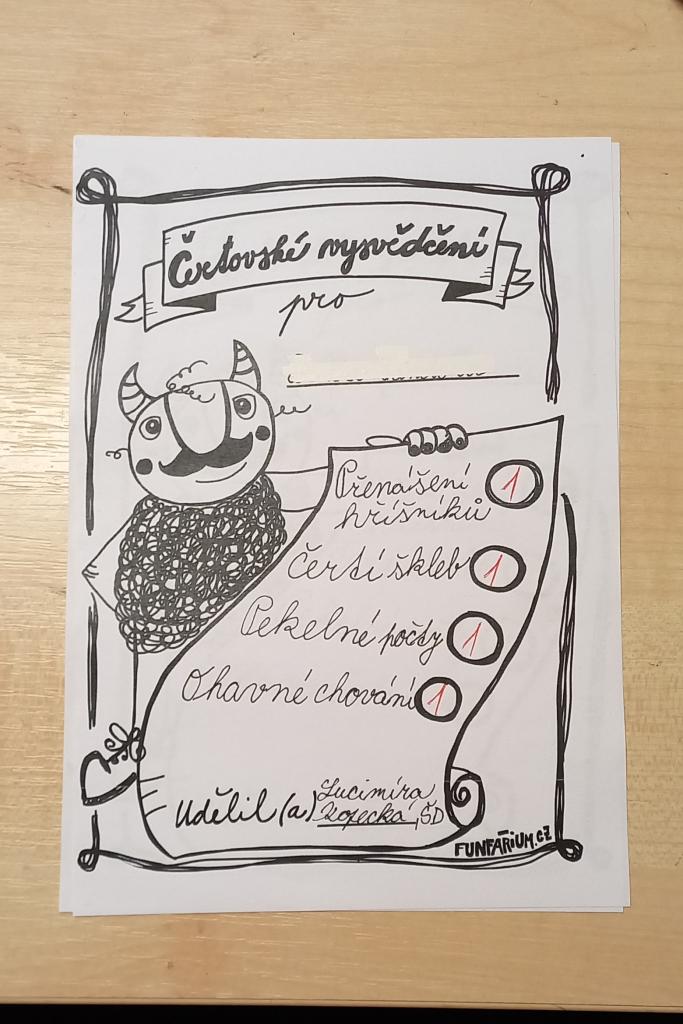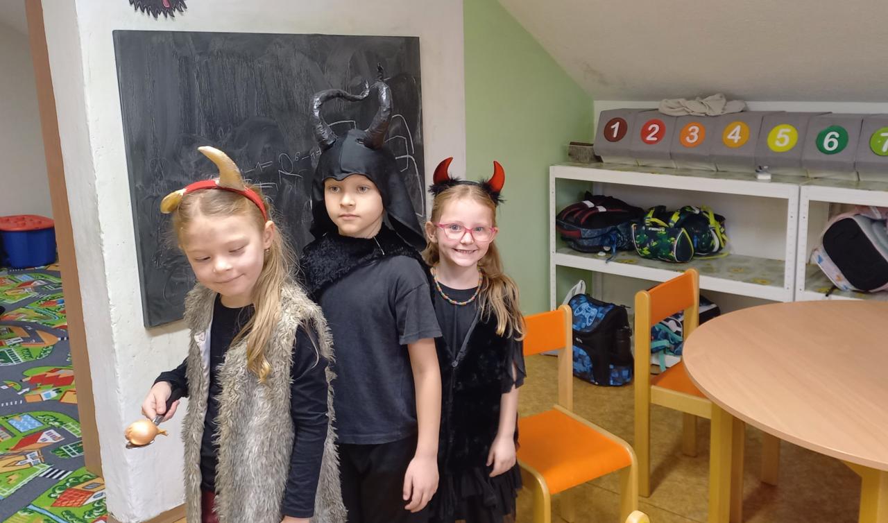 Na žáky čekalo zábavné odpoledne plné čertovských soutěží a úkolů. Museli dokázat svou odvahu a zručnost při hodu čertovskou podkovou, skokem přes pekelný oheň, slalomem s hříšníkem mezi pekelnými plameny nebo hodem míčku do čertovské tlamy. Potrápili ale také své rohaté hlavy čertovským puzzle nebo pekelnými počty. Čertovsky laděný den jsme si ve školní družině opravdu užili a jsme rádi, že si čerti v pekle nikoho nenechali.