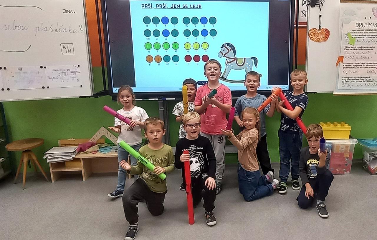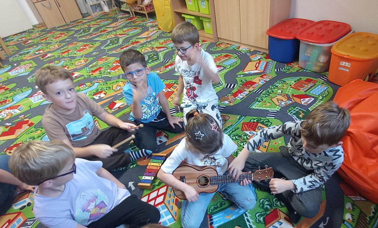 Nechyběla ani možnost si vyzkoušet na některé nástroje zahrát, konkrétně ukulele, klávesy a xylofon. Na jeden den jsme se proměnili v „trubkový orchestr“ s netradičním nástrojem zvaným boomwhacker. U všeho toho hraní nechyběl ani zpěv písniček jako Prší, prší nebo Kočka leze dírou. Na závěr jsme si udělali malé okénko do historie a ukázali jsme si, na čem lze hudbu přehrávat. Týden s hudbou jsme si moc užili!