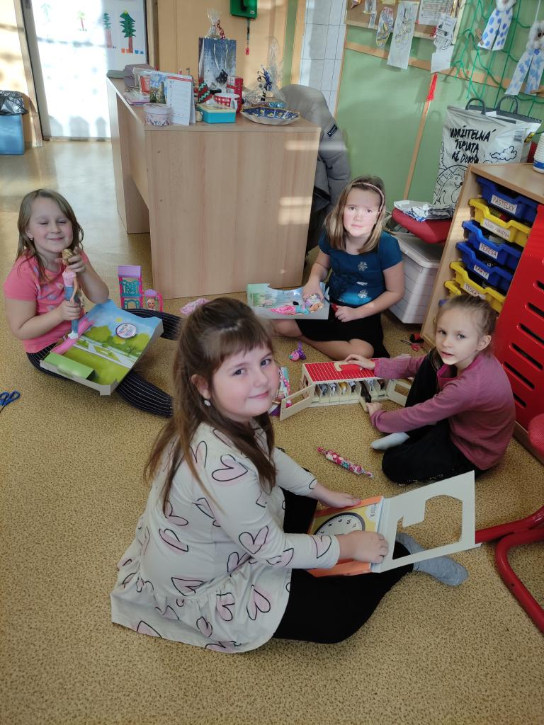 Děti měly také připravené pohoštění, ale nejvíce měly radost z nových hraček, které nám do družiny přinesl Ježíšek.