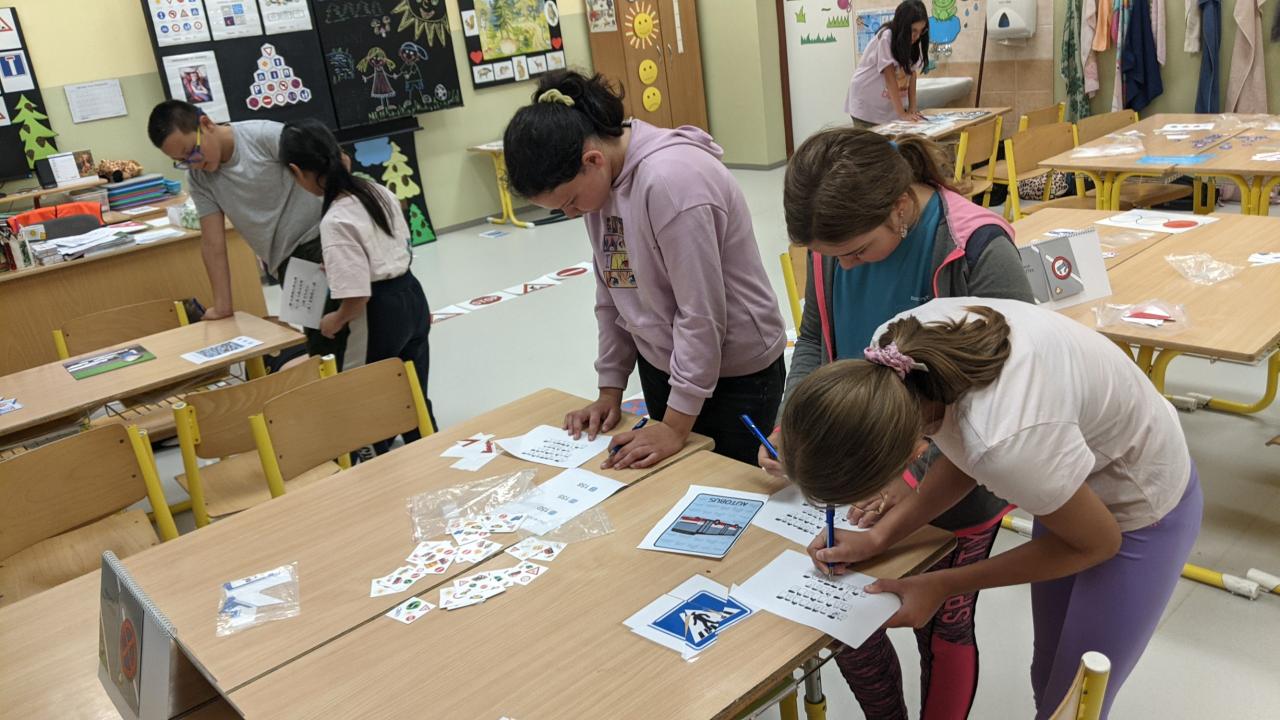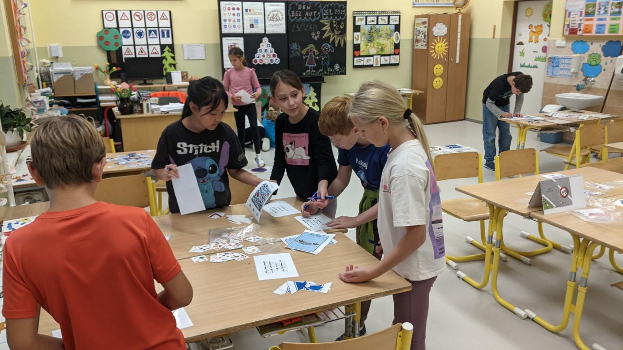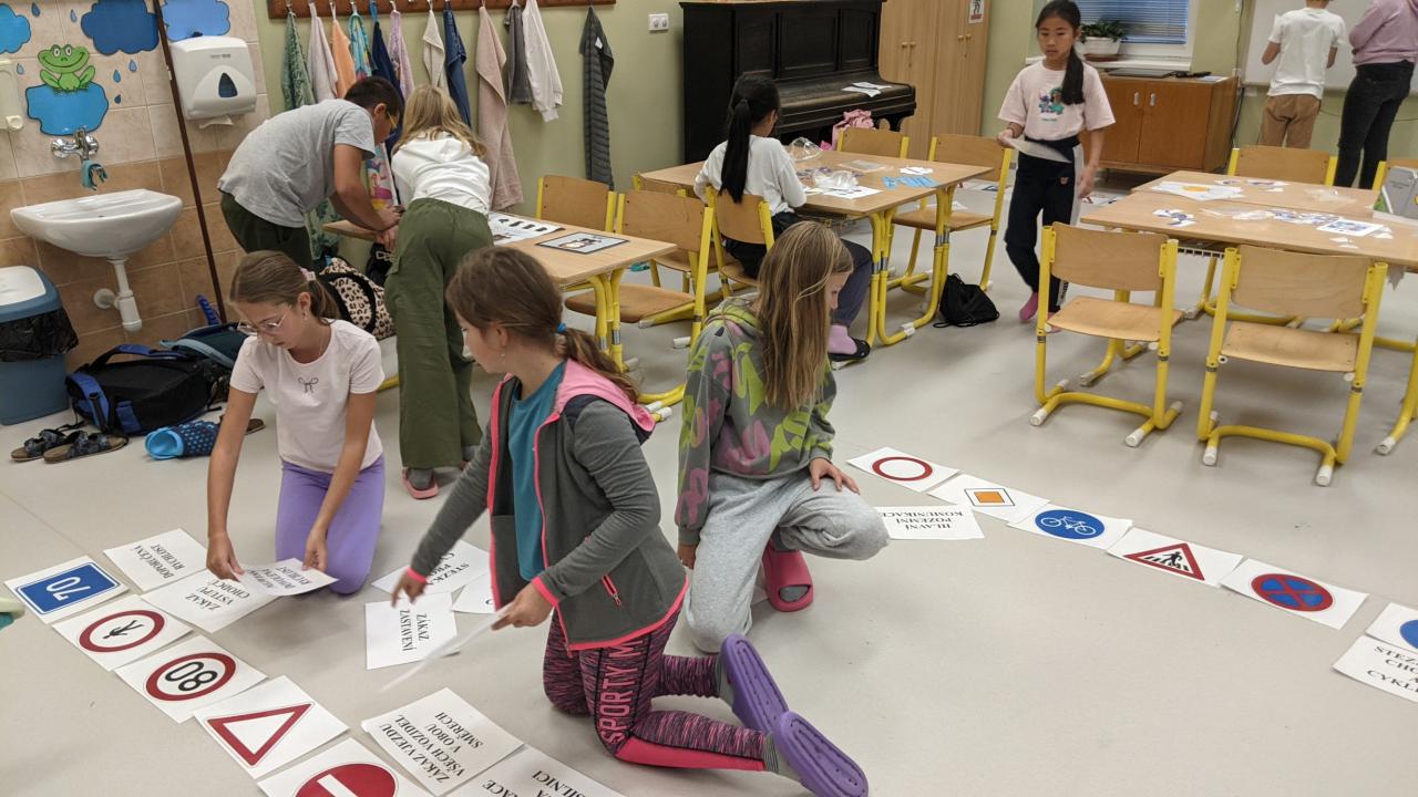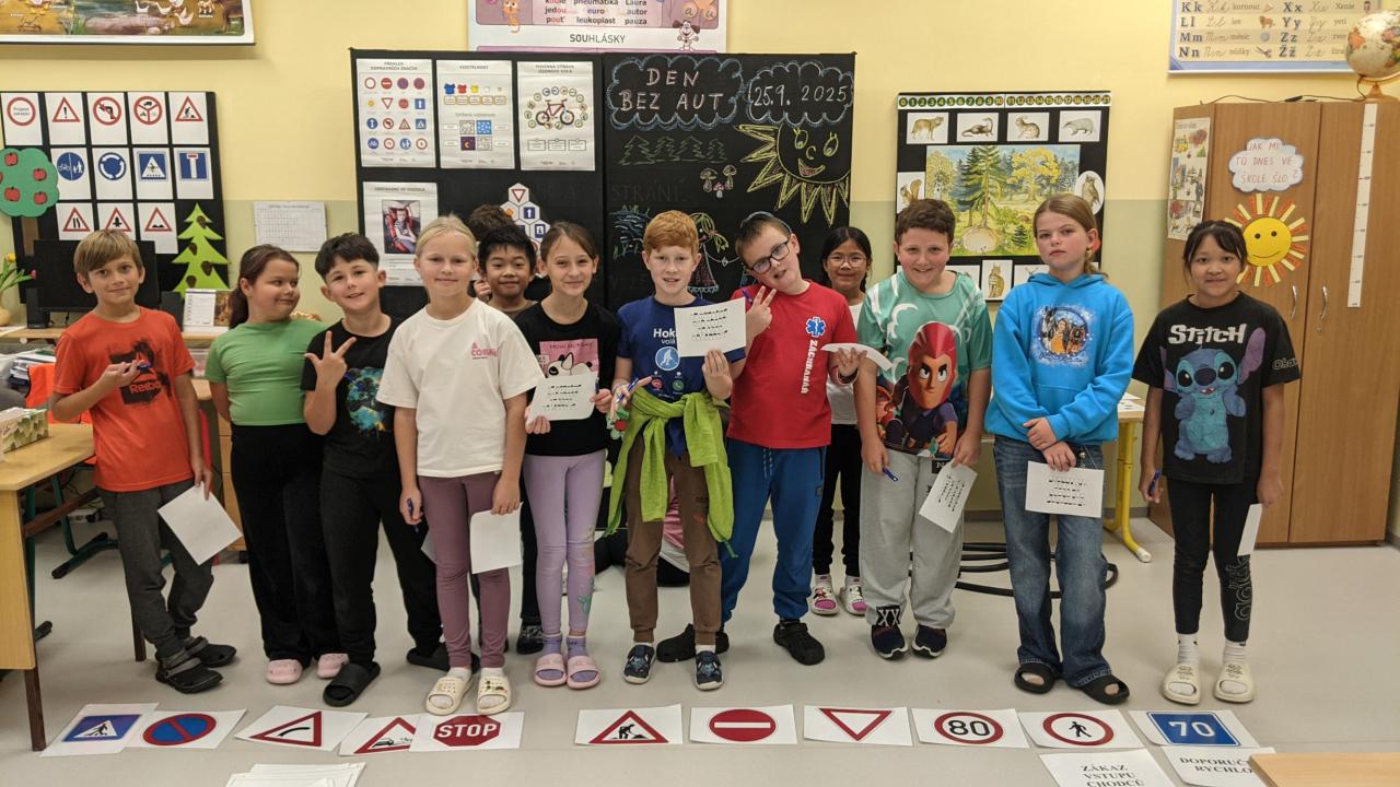 Formou her poznávali, tvořili a skládali dopravní značky. Také luštili tajenku v dopravní bojovce. Dozvěděli se něco o historii aut, sledovali videa o bezpečnosti a hráli dopravní hry. Celý den byl plný poučení i zábavy a připomněl nám, že bezpečné chování na silnici je důležité pro všechny.