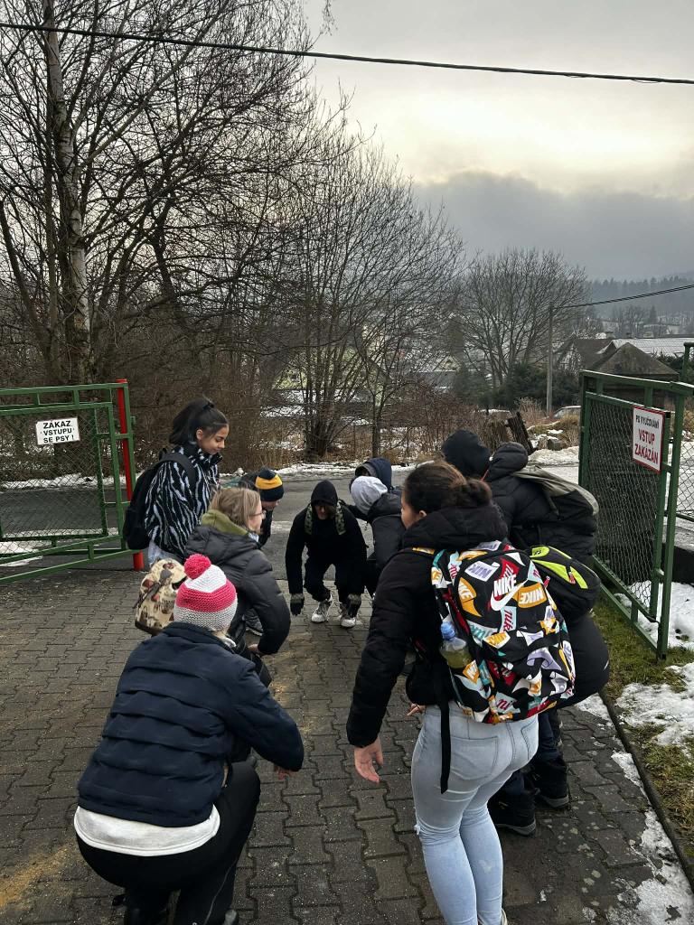6. tř. Výlet na Špičák Děti už se těší, svačiny jim chrastí. Všude je bílo, led a mráz, na Špičák vylézt nám dá čas. Čepice na hlavě musíme mít, o přestávce budeme jíst. Matyáš už bere sníh a my jedem na saních, letíme na ledu, padáme jak po medu.
