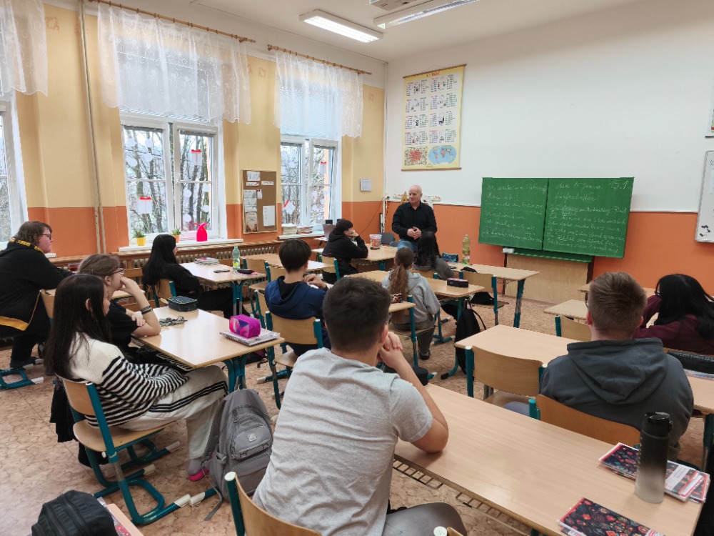 Přednášel Ing. Luděk Frank, který dlouhodobě působil u Policie ČR, převážně u kriminální policie a nyní je učitelem na ZŠ.